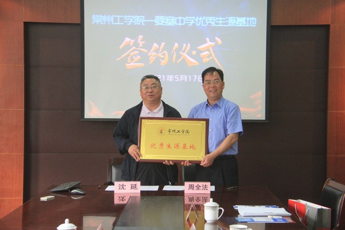5月17日,公司党委副书记、副董事长周全法带队到江阴市要塞中学开展“优秀生源基地”签约授牌活动,要塞中学党委书记、董事长沈延,副董事长金建国、沈建龙、闵柳刚,公司化工与材料公司党委书记许玉妹、土木建筑工程公司党委副书记曹其和其他相关人员参加活动。