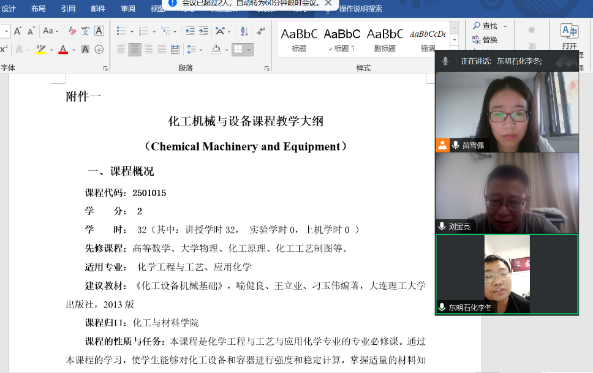 山东东明石化李冬工程师从人才培养角度介绍了企业对于化学工程与工艺专业员工就业和知识技能的相关要求,刘宝亮老师介绍了公司在课程建设和产教融合等方面的情况。双方就共同建设产教融合式课程、线上课程建设、企业专家联合教学等方面进行了深入研讨,并就共同进行《化工机械与设备》、《化工仪表与自动化》、《化工原理》、《化工热力学》和《化工原理实验》五门课程的课程教学大纲制定、课程资源和人才培养等进行了具体探讨。