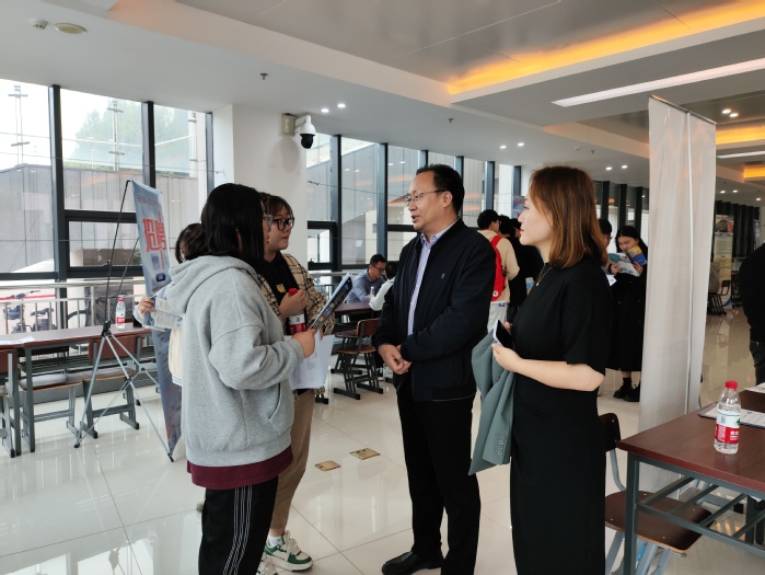 公司领导与用人单位以及毕业生亲切交流,了解用人单位招聘情况、人才需求和毕业生求职意向,积极为员工开拓就业岗位,想方设法促进毕业生与用人单位“双向奔赴”。