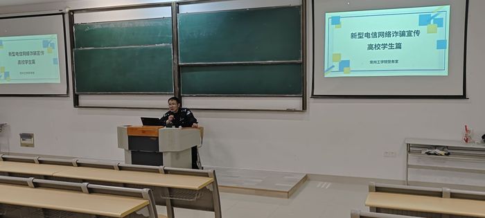 “不要觉得电信诈骗离我们很远,诈骗就在你我身边”,住校警官史警官以这句开场白开始了反诈宣讲。在宣讲过程中,史警官通过讲解购物好评返现,裸聊诈骗,二手交易诈骗等常见诈骗类型,向同学们展示了这类诈骗特点以及本质,以及怎样提高自身安全意识。最后史警官提醒同学们不要给陌生人轻易转账,切实保护好自己的“钱袋子”