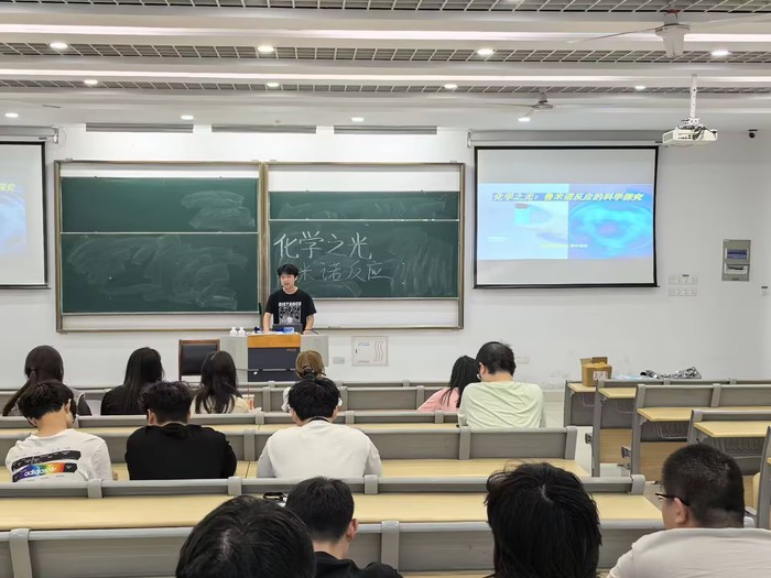 为激发同学们对化学科学的兴趣,培养科学探究精神,化工新材料社团与化工青年协会于2025年4月29日在天枢楼B102联合举办了“化学之光:鲁米诺反应的科学探究”社团活动。本次活动吸引了来自全校各院系的60余名化学爱好者积极参与。