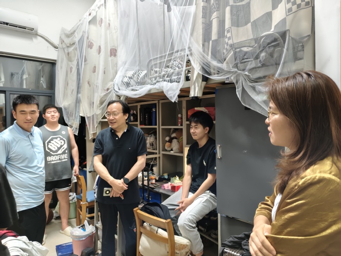 走访过程中,干方群与毕业生促膝交谈,亲切询问同学们的毕业论文答辩情况、就业去向落实、未来职业规划以及离校前的实际困难。